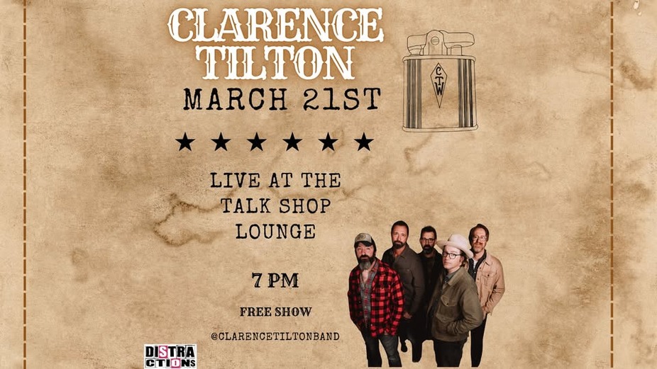 Join us on March 21st at 7pm for a free show at Talk Shop Lounge. Clarence Tilton a full band will be performing.